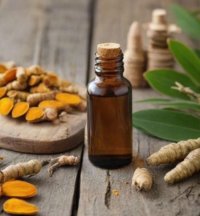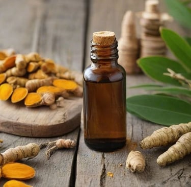 Turmeric Leaf Oil is a natural essential oil extracted from fresh green turmeric leaves using advanced distillation techniques. Unlike turmeric root oil, this oil carries a fresh, herbaceous, and slightly camphoraceous aroma, making it highly valued in aromatherapy, herbal formulations, and wellness products.